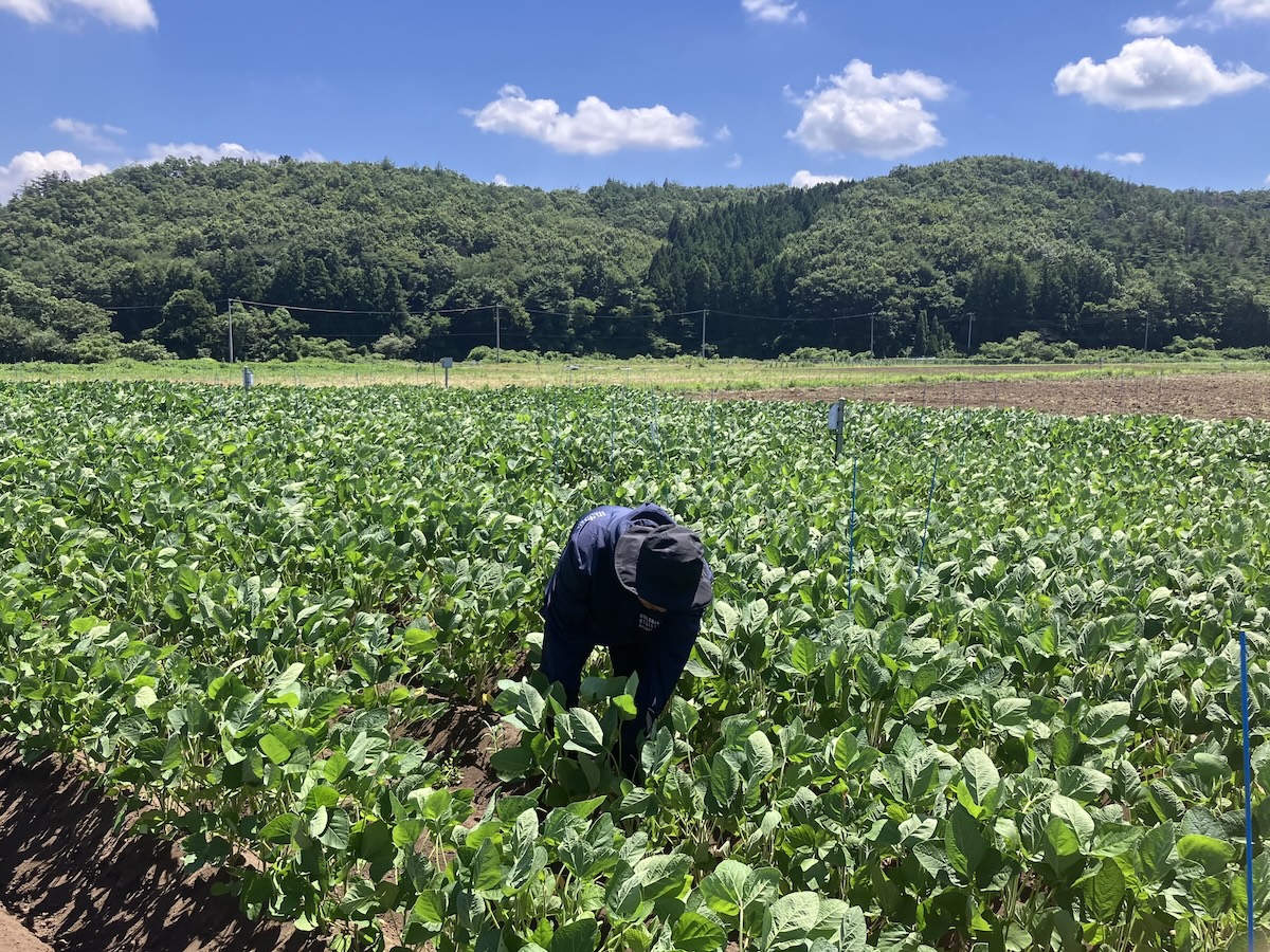 2025/7/30 Sampling soybeans at the flowering stage in Fukushima City.