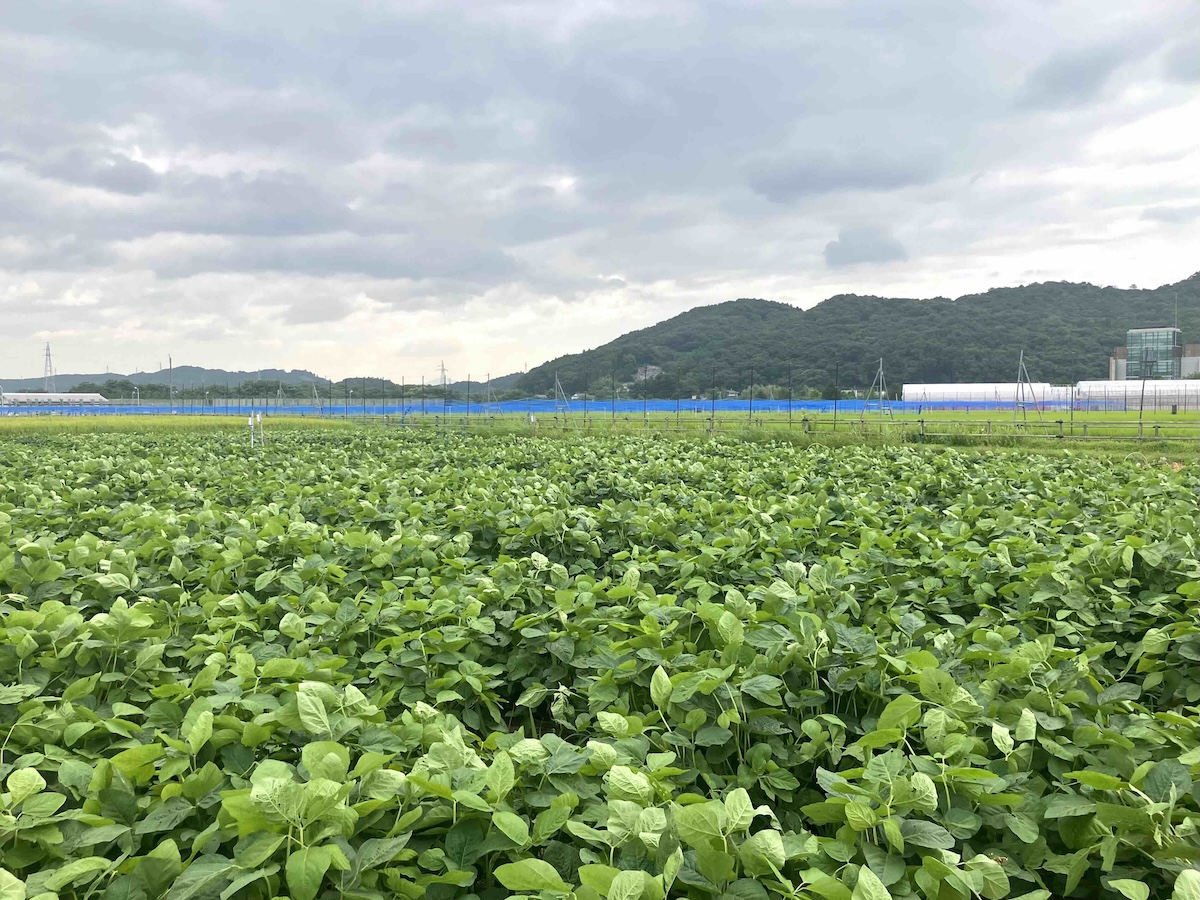 2025/8/5 Sampling soybeans at the flowering stage in Kōriyama.