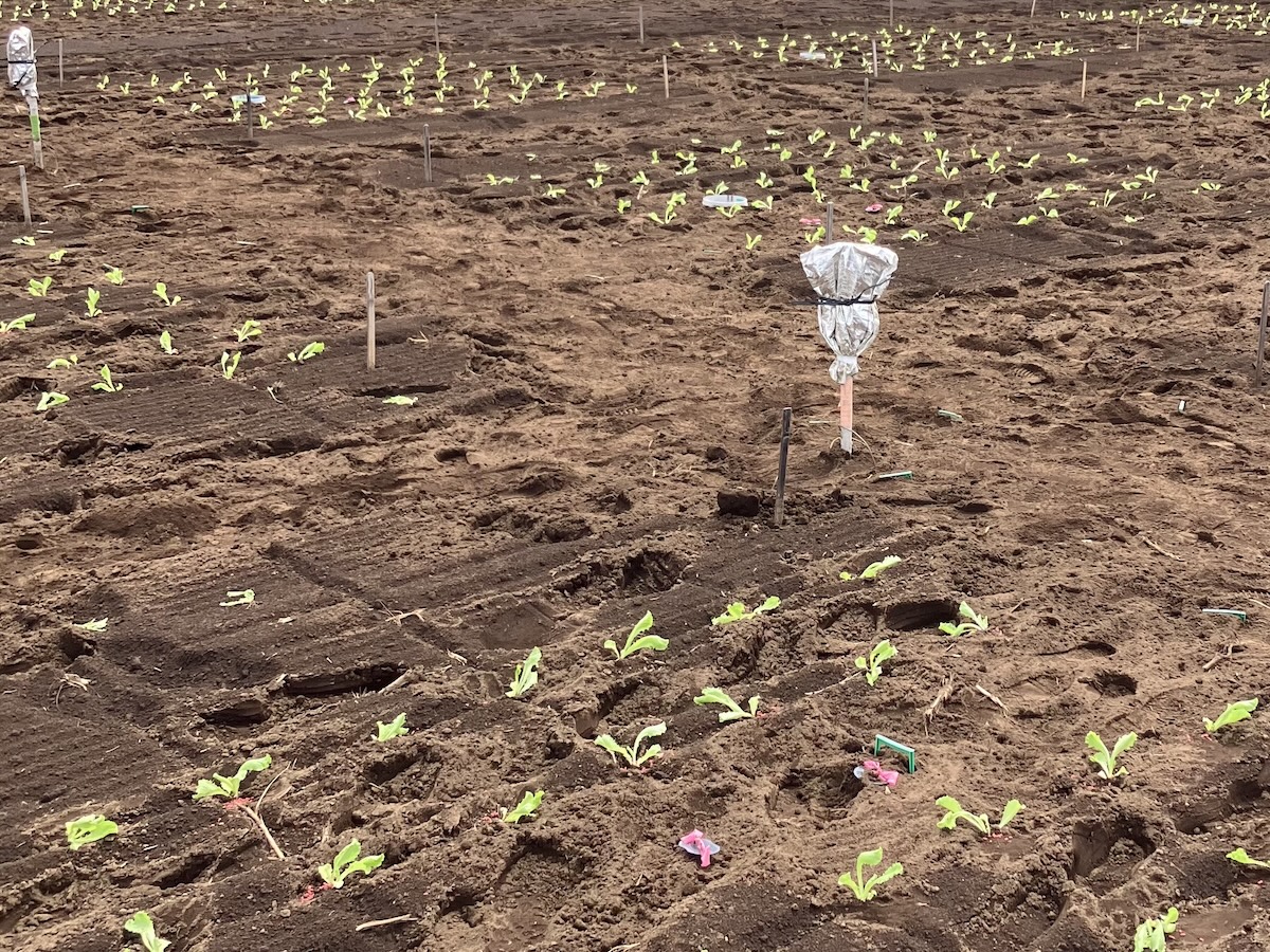 2025/9/12 Transplanting lettuce and setting up chambers and sensors at NARO (the National Agriculture and Food Research Organization).