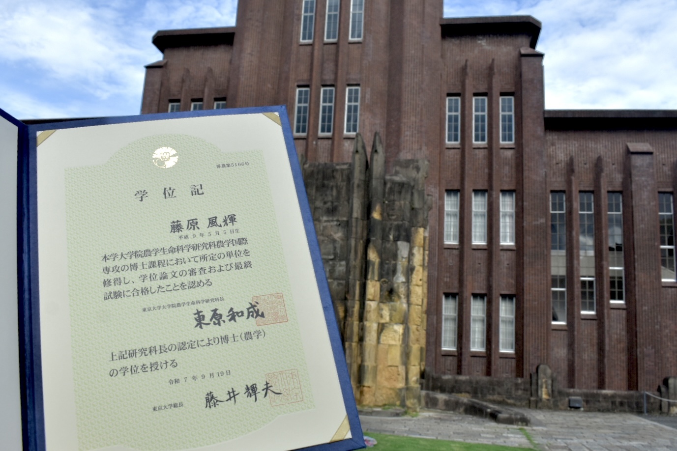 東京大学大学院博士課程を修了し、博士(農学)を取得しました。